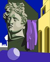 Digitale illustratie van een moderne versie van het surrealistische kunstwerk Het lied van de liefde (gemaakt in 1914) in felle kleuren.