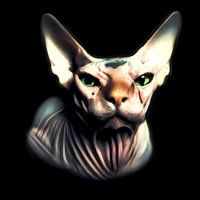 Indringend low key portret van een roze Sphinx kat of naaktkat met groene ogen en een traan die over zijn wang rolt.