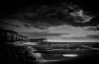 Avond aan de kust van Normandië bij laag water