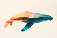 Een majestueuze walvis ontvouwt zich in zachte kleuren, terwijl het decor van een dromerig landschap in zijn contouren speelt. Deze harmonieuze combinatie van zee en land straalt tegelijkertijd rust en avontuur uit. Een perfecte blikvanger voor de woonkamer die gesprekken stimuleert en de ziel uitnodigt om te dromen.