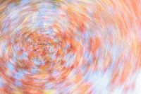 Deze opzettelijk bewogen foto geeft door de beweging en kleuren een dubbel beeld. Zie je een boomkruin in de lucht of zie je die boomkruin weerspiegeld in water?