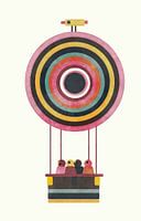 Kunst voor de kinderkamer van Joost Hogervorst. Luchtballon met kinderen en een vogel er bovenop.