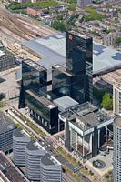 Luchtfoto Delftse Poort aka Nationale Nederlanden en Unilever genomen vanuit een vliegtuig te Rotterdam.