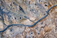 Kleurrijke dronefoto / luchtfoto van het vulkanische Hverir geothermisch veld / zwavelveld in IJsland.