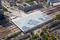 Luchtfoto Rotterdam Centraal Station vanuit een vliegtuig genomen.