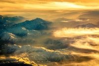 Luchtfoto Zagrosgebergte in Iran met mist in de schemering