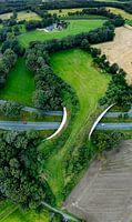 Nederlands landschap met ecopassage viaduct gezien vanuit de lucht als oversteekplaats voor wild.