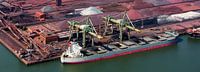 Luchtfoto panorama EMO te Rotterdamse haven.