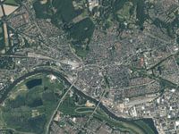 Deze luchtfoto van Arnhem is verkregen door verschillende GIS technieken op open data los te laten. De Luchtfoto is bewerkt met diverse filters zodat er wat meer details uitspringen.