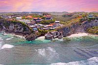 Luchtfoto van Suluban beach in Uluwatu area op Bali Indonesia bij zonsondergang
