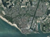 Koop de foto Luchtfoto van Vlissingen van Maps Are Art als print op canvas, aluminium dibond, (ingelijste) fotoprint, behang en ArtFrame. Voor jou op maat geprint in Fine-Art kwaliteit.