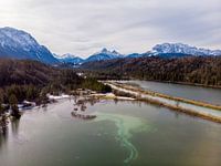 Luchtfoto van de Isarstausee Krün met bergen en bossen