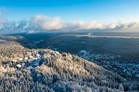 Luchtfoto van de Sommerberg in Bad Wildbad in het noordelijke Zwarte Woud in de winter, Zwarte Woud, Baden-Württemberg, Duitsland.