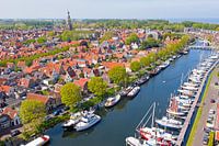 Luchtfoto van de haven en het stadje Enkhuizen in Nederland