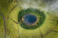 Luchtfoto van een vulkanisch meer op de Azoren van Heiko Meier