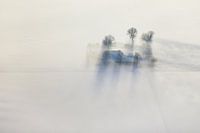 Nederland, Klundert, 20 december 2010, Winterlandschap, boerderij in de sneeuw en grondmist, uit de sporen rechts van de boerderij kunnen we afleiden dat de wind van links komt en het mistveld verder over het landschap verspreidt.luchtfoto, luchtfotografiefoto: Marco van Middelkoop/Hollandse Hoogte