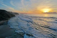 Luchtfoto van het strand Praia Vale Figueiras in Portugal bij zonsondergang