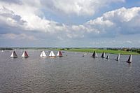Luchtfoto van het traditionele skutsjesilen met oude boten op het Heeger meer in Friesland in Nederland