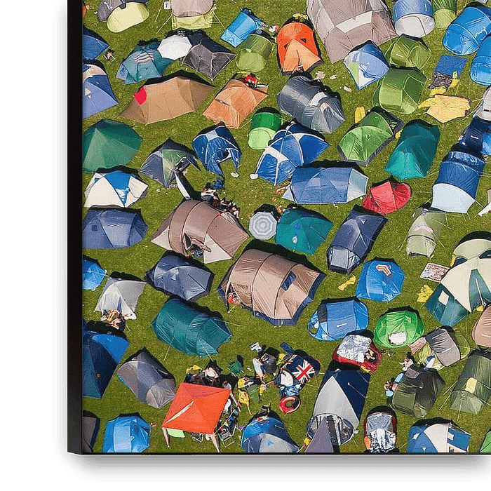 Koop de foto Luchtfoto van tenten op camping bij het Lowlands muziekfestival van Frans Lemmens op canvas, aluminium dibond, (ingelijste) fotoprint, behang en ArtFrame, op maat geprint in Fine-Art kwaliteit.