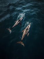 Wilde dolfijnen in de Atlantische oceaan. Luchtfoto met een drone.