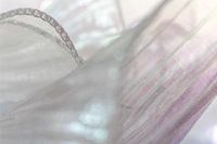 Dit werk toont een abstracte close-up van een doorschijnende, iriserende stof met een fijne textuur en zichtbare naadrand. De delicate materialiteit en subtiele glans geven het beeld een bijna gewichtloos effect. De inspiratie voor deze foto was het samenspel van licht, beweging en textieldetails - een moment waarop materialiteit en licht samensmelten tot een poëtische eenheid.