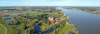 Luchtpanorama van slot Loevestein aan de rivier de Merwede in Nederland