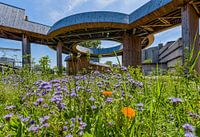 Luchtsingel Park Pompenburg, Rotterdam centrum, Zuid Holland, Netherlands. De Luchtsingel is een houten voetgangersbrug van 390 meter die Rotterdam Centrum verbindt met Rotterdam Noord