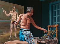 Realistisch schilderij in acryl van de Britse schilder Lucian Freud, geschilderd door de kunstenaar Paul Meijering - het originele schilderij is 120 x 90 cm en beschikbaar voor de verkoop.