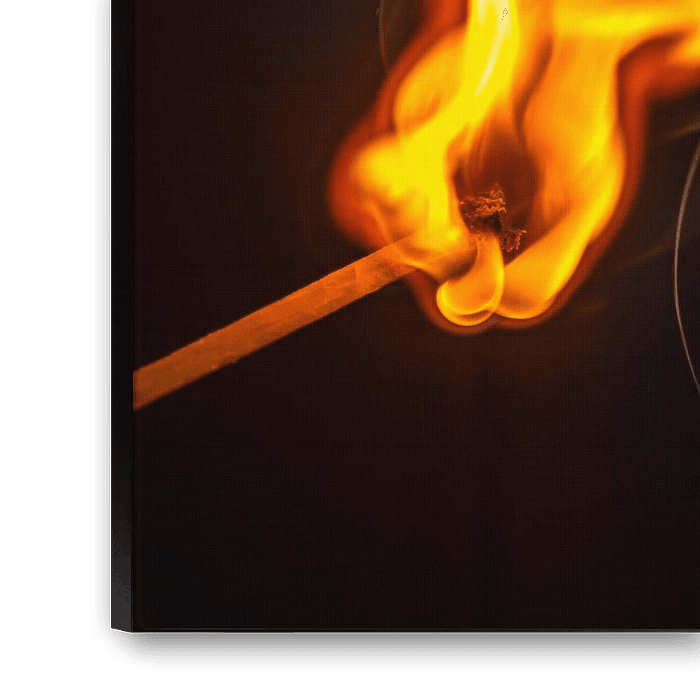 De kop van een lucifer vat vlam en het vuur spat uiteen