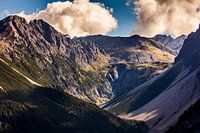 Het dal achter de muur van de Lünersee stuwmeer muur in de Oostenrijkse Alpen in Vorarlberg.