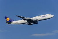 Deze Boeing 747-8 Jumbo Jet van Lufthansa, met registratie D-ABYU, is opgestegen van Frankfurt International Airport.
