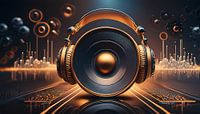 Luidsprekers en hoofdtelefoons met digitale muziek en golfvormen