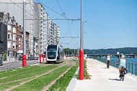 Liége Belgique Belgie Belgium New Tram line operated by TEC under construction along the River Meuse / Maas. Before the line is opened tram drivers are put through their paces to learn how to drive the CAF Urbos on a small section. public, transport, system, liege, luik, tuition,