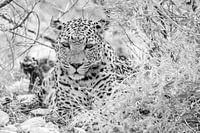 En in zwart wit komt het prachtige gevlekte patroon van zijn vacht nog mooier uit.