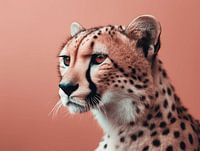 Een luipaard in een minimale weergave met een mooie oranje/roze gloed. A.I. kunst voor aan je muur!