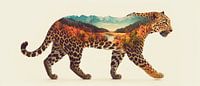 Een majestueuze luipaard, wiens lichaam de schoonheid van een ongerept landschap onthult, beweegt zich kunstzinnig door de kamer. De rijke kleuren van de natuur versmelten met het krachtige dier en geven elke kamer diepte en dynamiek. Ideaal voor een woonkamer, waar het de conversatie stimuleert en de verbeelding aanwakkert.