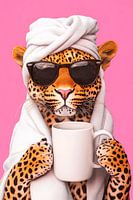 Over ‘Luipaard met koffie en handdoek’ van Poster Art Shop