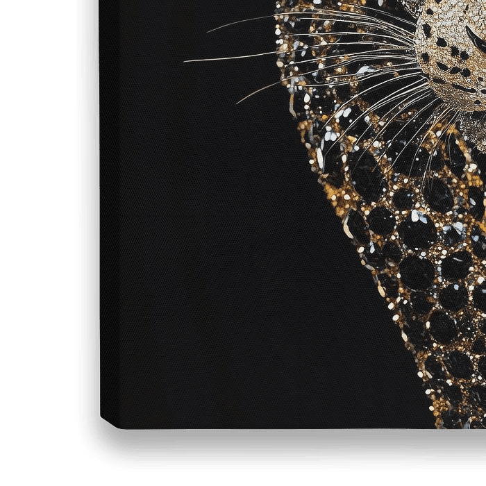 Unieke luipaard van kristal glas portret schilderij waarin de kracht van het luipaard samenkomt met de verfijnde schoonheid van kristalachtige vormen. Deze bijzondere compositie toont een majestueus luipaard, opgebouwd uit abstracte facetten die doen denken aan glas, kristal en edelstenen. De geometrische structuur geeft het dier een…