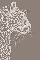 Een minimalistisch portret van een luipaard op grijze / taupe achtergrond.