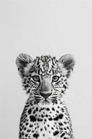 Dit indrukwekkende zwart-wit portret van een luipaard vangt de krachtige elegantie en intense uitdrukking van het dier. De gedetailleerde weergave van het opvallende vachtpatroon en de doordringende ogen maken van dit kunstwerk een echte blikvanger. Perfect voor liefhebbers van wilde dieren en hoge kwaliteit fotografische kunst, zal deze foto een indrukwekkende en stijlvolle touch toevoegen aan elke kamer.