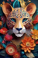 luipaard, 3D, papier, gekleurd, roofdier, digitale kunst