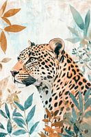 Met zijn majestueuze uitdrukking en levendige vachtpatroon straalt dit luipaard een fascinerende elegantie uit. Omlijst door zachte bladeren en een harmonieus kleurenpalet is het een blikvanger die een ontspannen maar dynamische sfeer creëert. Ideaal voor de woonkamer of slaapkamer, het voegt een vleugje natuur en stijl toe aan elke kamer.