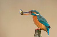 De IJsvogel heeft zojuist een lekker visje gevangen en staat op het punt deze te gaan opeten.