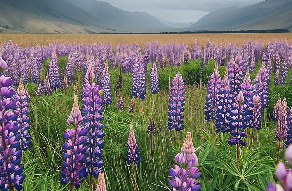 Lupinen in een dromerig landschap
