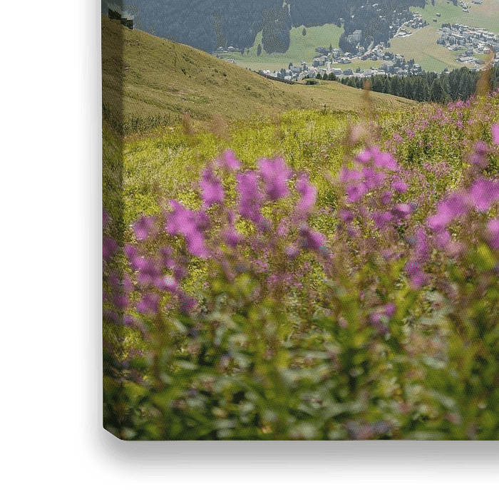 Lupinen met uitzicht op Davos en de Zwitserse Alpen