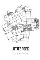 Zwart-witte landkaart, stratenplan of plattegrond van Lutjebroek. Lutjebroek is gelegen in de gemeente StedeBroec, provincie Noord-Holland. Op de stadskaart zijn alle openbare wegen in Lutjebroek opgenomen. Verder is de kaart voorzien van de coördinaten van het centrum van Lutjebroek.