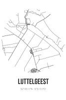 Zwart-witte landkaart, stratenplan of plattegrond van Luttelgeest. Luttelgeest is gelegen in de gemeente Noordoostpolder, provincie Flevoland. Op de stadskaart zijn alle openbare wegen in Luttelgeest opgenomen. Verder is de kaart voorzien van de coördinaten van het centrum van Luttelgeest.