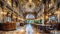 Luxe koffiebar met twee verdiepingen en grote ramen