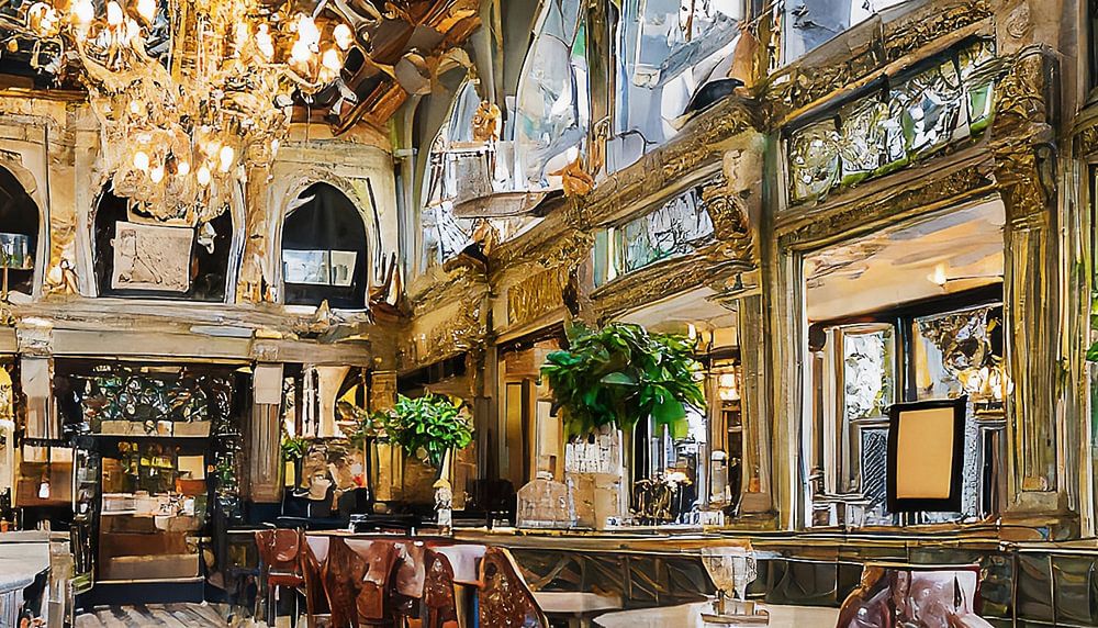 Luxe koffiebar met twee verdiepingen en grote ramen