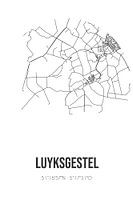 Zwart-witte landkaart, stratenplan of plattegrond van Luyksgestel. Luyksgestel is gelegen in de gemeente Bergeijk, provincie Noord-Brabant. Op de stadskaart zijn alle openbare wegen in Luyksgestel opgenomen. Verder is de kaart voorzien van de coördinaten van het centrum van Luyksgestel.